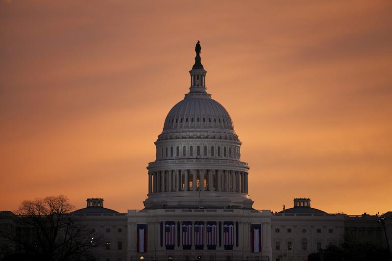Vista general del Capitolio horas antes del discurso inaugural del presidente estadounidense, Barack Obama, en Washington