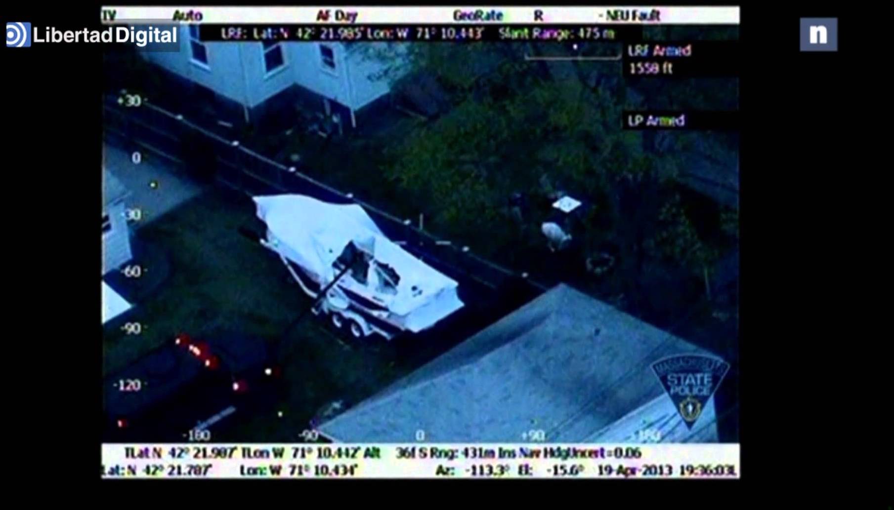 Las imágenes corresponden al patio de una casa en Watertown, donde el sospechoso de los atentados de Boston, se escondió en un barco. El propietario de la embarcación fue el primero en darse cuenta de la presencia del joven y alertó a la policía. Las imágenes fueron tomadas con cámaras térmicas. Un tipo de tecnología que se reconoce el calor del cuerpo humano.