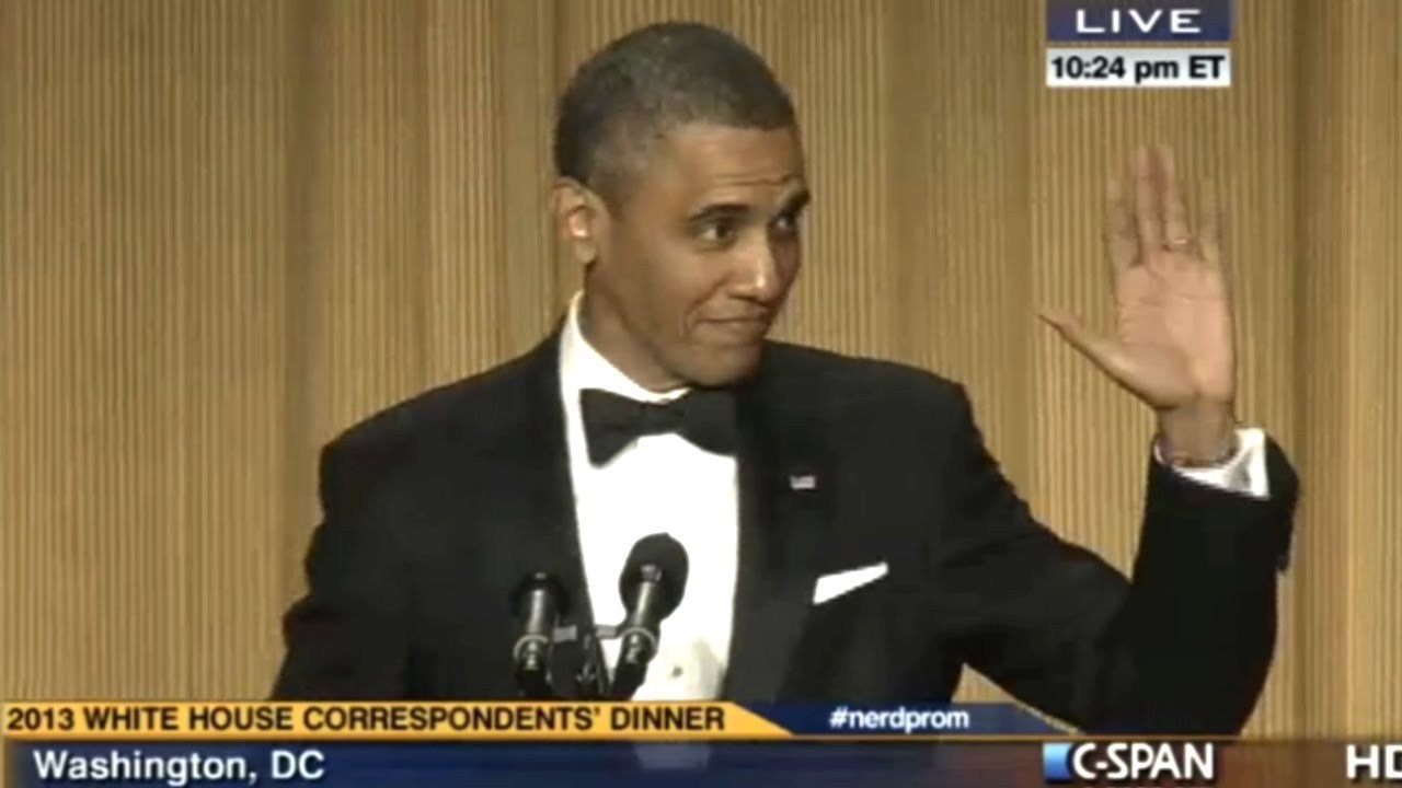 El discurso de Obama en la cena anual de corresponsales de la Casa Blanca tuvo como colofón un vídeo en el que el director de cine Steven Spielberg aseguraba que, tras rodar su éxito Lincoln, había decidido producir una nueva película sobre Obama, y seleccionaría de nuevo al oscarizado actor Daniel Day Lewis como protagonista, dada su capacidad para "meterse en el personaje".