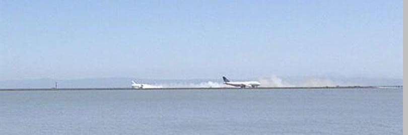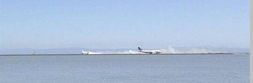 Un vídeo colocado en Youtube muestra al avión del vuelo 214 sobre la pista y se ve humo que sale de la cabina mientras los pasajeros evacuaban la aeronave mediante las rampas de emergencia.