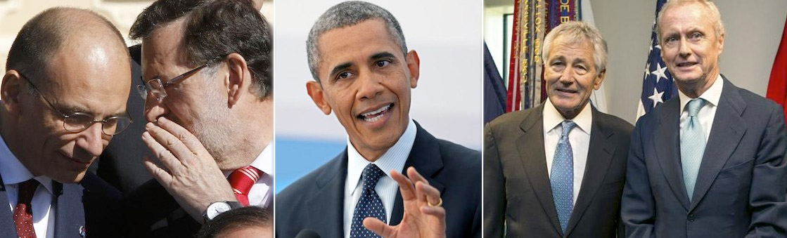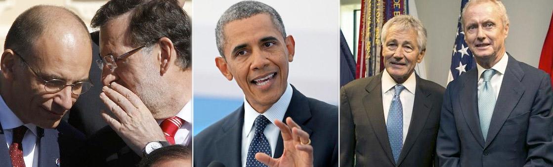 Al mismo tiempo, se producía en Washington una reunión entre el ministro de defensa, Pedro Morenés y el Secretario de Defensa de EEEUU, Chuck Hagel en la que también se abordó el asunto sirio. Al término de la misma, Hagel elogió "a ministro Morenés por el apoyo de España en el asunto y los líderes han acordado permanecer en estrecha coordinación, al tiempo que la situación evoluciona", según indicó el Departamento de Defensa en un comunicado. Hagel también agradeció a su homólogo español su apoyo al Ejército estadounidense, en concreto, por las bases aéreas en Morón (Sevilla) y naval de Rota (Cádiz) de la OTAN.
