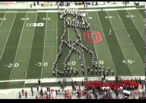 La banda de la Universidad Estatal de Ohio, en Estados Unidos, aprovechó el descanso de un partido de fútbol americano contra la Universidad Estatal de Pennsylvania, para realizar un espectáculo en el que la banda elige una película o artista y lo representa sobre el campo.