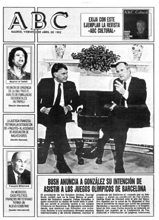 Felipe González también se reunió con George Bush padre en Washington. Fue en abril de 1992. Así lo reflejó el diario ABC. En total, González visitó la Casa Blanca en cuatro ocasiones en sus trece años de mandato.