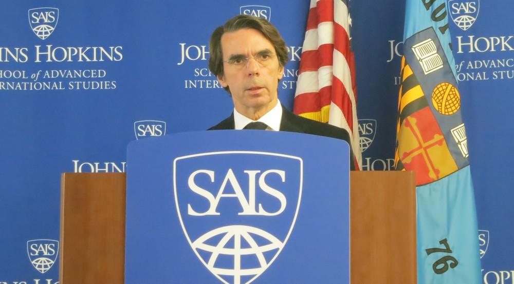 El expresidente del Gobierno y presidente de la Fundación FAES, José María Aznar, ha presentado este miércoles en la Johns Hopkins University de Estados Unidos el libro blanco Una nueva comunidad atlántica: generar crecimiento, desarrollo humano y seguridad en el Hemisferio atlántico. El texto, elaborado por los líderes de la Atlantic Basin Initiative que Aznar preside y puso en marcha en el marco del Center for Transatlantic Relations de la Universidad, hace un llamamiento a la acción para redefinir una nueva comunidad atlántica bien posicionada en el mundo que borre la línea invisible que divide el Atlántico Norte y Sur y que, por tanto, incluya la cooperación con Latinoamérica y África.