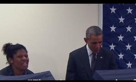 Mientras Obama estaba emitiendo su voto en una máquina electrónica en el centro comunitario Martin Luther King Jr. de Chicago, hacía lo mismo, a su lado en otra máquina Aia Cooper. El novio de esta, Mike Jones, se acercó a ambos y le dijo a Obama: "Señor presidente, no toque a mi novia". "Realmente no estaba planeando hacerlo", respondió el político, quien aceptó de buen humor el comentario.