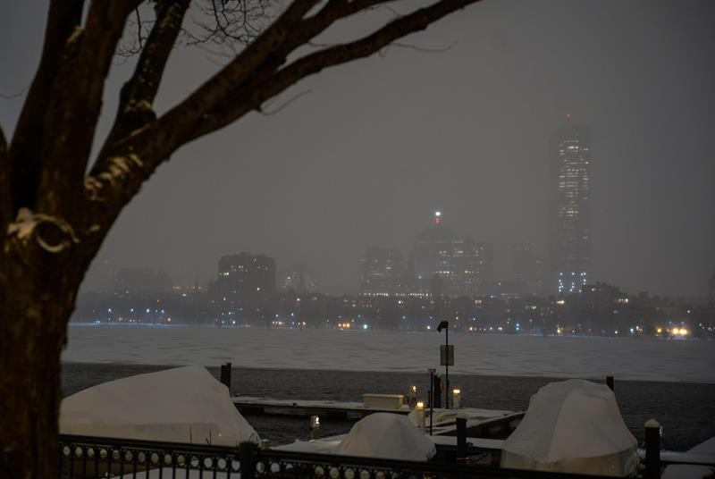 Vista de la vieja Torre John Hancock en Boston, Massachusetts (EE.UU.) este lunes nada más comenzar el temporal.