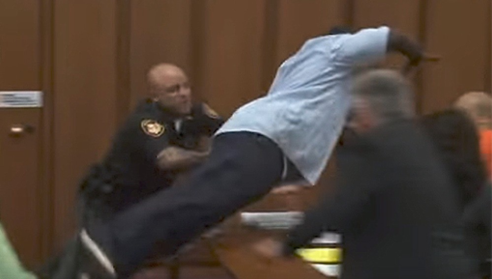 El asesino, acusado de matar a tres personas, sonrió al padre de una de las víctimas. Éste contestó abalanzándose sobre el acusado.