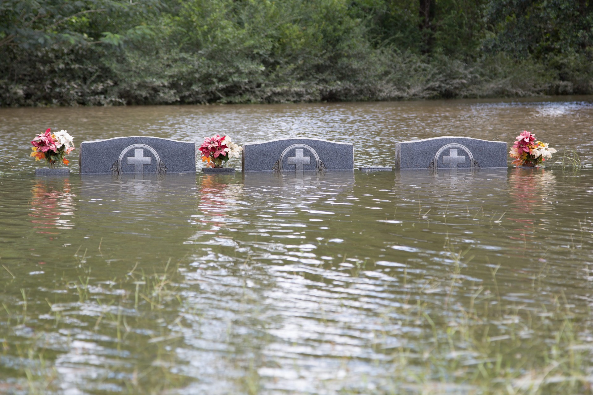 Las inundaciones han llegado hasta el cementerio metodista Bethel United en Greenwell Springs.