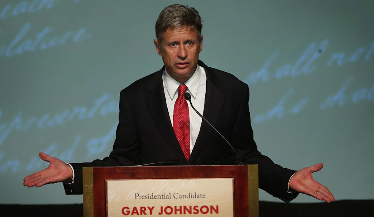 Gary Johnson es el candidato presidencial por el Partido Libertario. El que fuera gobernador republicano de Nuevo México entre 1995 y 2003 ya fue el candidato libertario en 2012, donde consiguió un magro 1% que, sin embargo, supuso un récord para el partido. Sin embargo, la nominación de Donald Trump le está aupando en las encuestas, que prevén un porcentaje de votos de alrededor del 10%. Su lucha en la actualidad está en romper el techo del 15% que le permitiría entrar en los debates presidenciales televisados, convirtiéndose en el primer candidato de un tercer partido en conseguirlo desde Ross Perot.