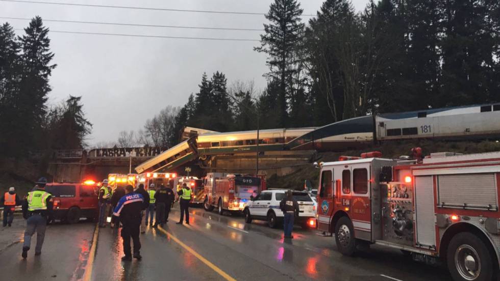 Un tren descarrila sobre una autopista a las afueras de Seattle