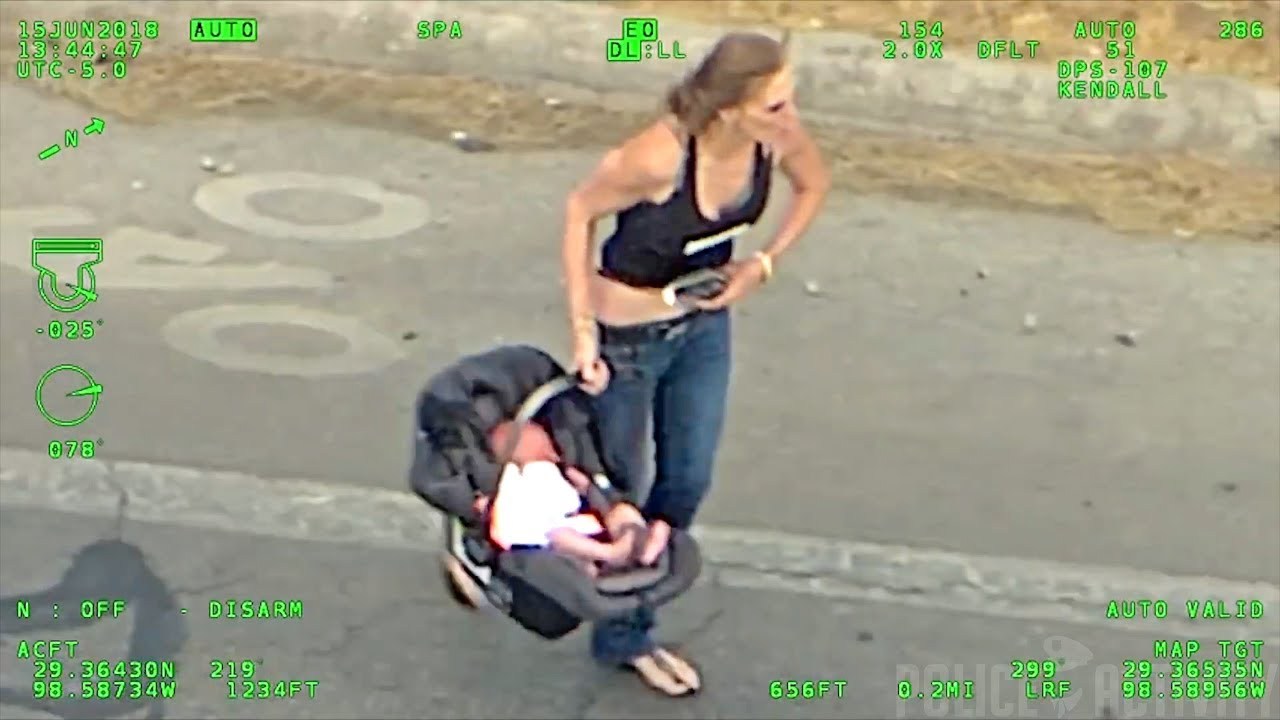 Las imágenes, captadas por uno de los helicópteros de la policía de Texas, muestran el dramático suceso ocurrido en una de las carreteras del estado sureño.
