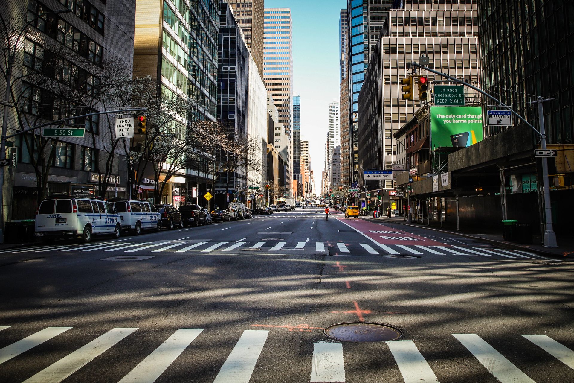 Una calle de Manhattan, en Nueva York, completamente vacía y sin ningún tipo de tráfico.