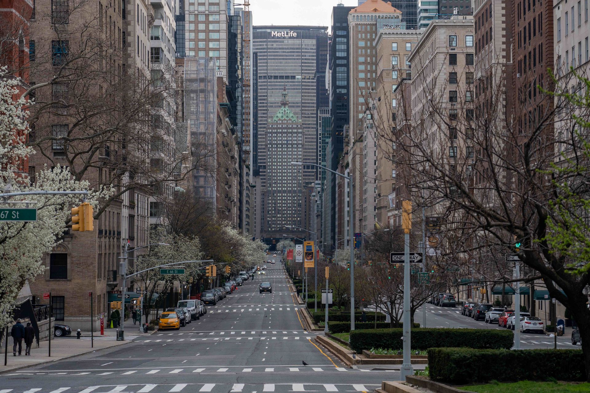 Una vista de Park Avenue vacío en el centro de Manhattan antes de la imposición de la orden ejecutiva del "Estado de Nueva York en pausa", mientras el coronavirus continúa propagándose por los Estados Unidos.
