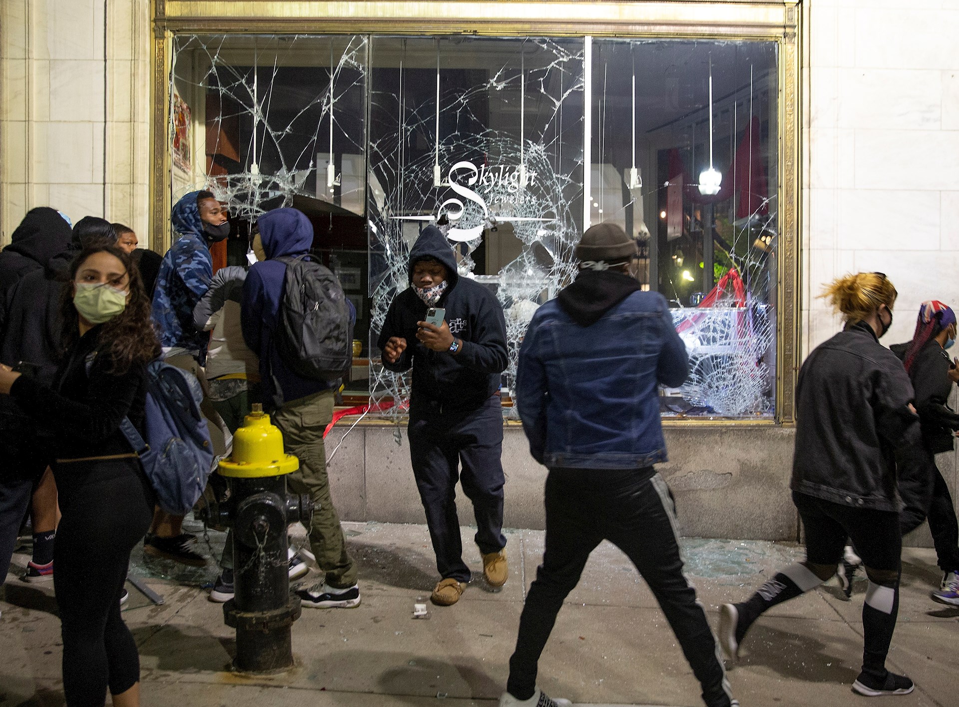Varios manifestantes roban artículos de una joyería durante las manifestaciones por la muerte de George Floyd, quien murió bajo custodia policial, en Boston, Massachusetts, EE. UU.