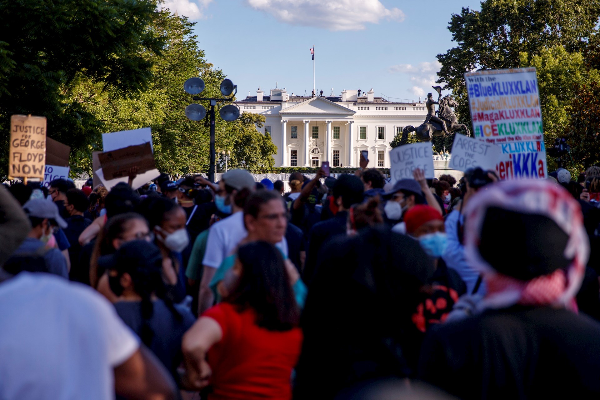 Manifestantes protestan frente a la Casa Blanca, en Washington, durante una marcha para quejarse por la muerte de George Floyd.