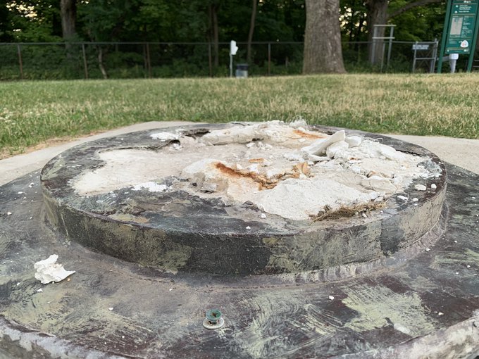 La estatua apareció a unos 15 metros de distancia de su pedestal en el parque Maplewood, justo tras una valla y cerca del río Genesee, según ha informado la Policía de Rochester en declaraciones recogidas por el periódico local Democrat & Chronicle.