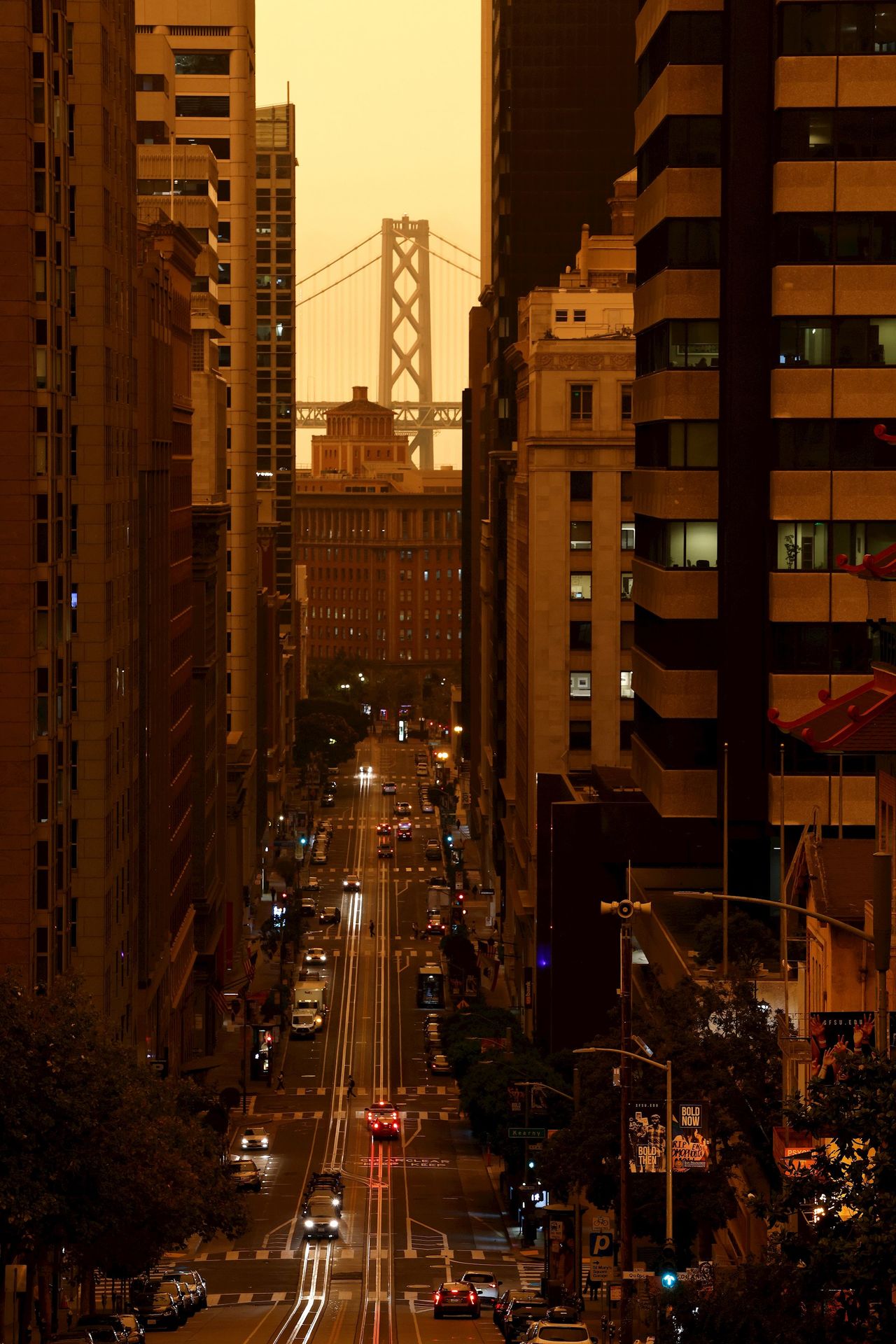 Vista del cielo anaranjado casi rojo en San Francisco, California. El intenso humo de estos días a causa de los incendios declarados en California (EE.UU.) se unió este miércoles a la niebla y cubrió San Francisco con un cielo inédito de un intenso color naranja que recordaba al imaginario del Apocalipsis.