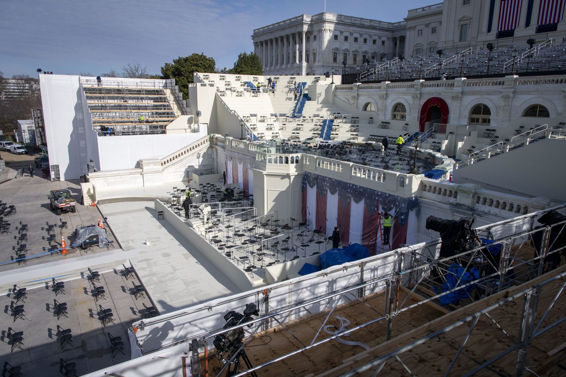 La infraestructura que soportará a los miles de invitados en la toma de posesión que se celebrará en el Capitolio el 20 de enero.