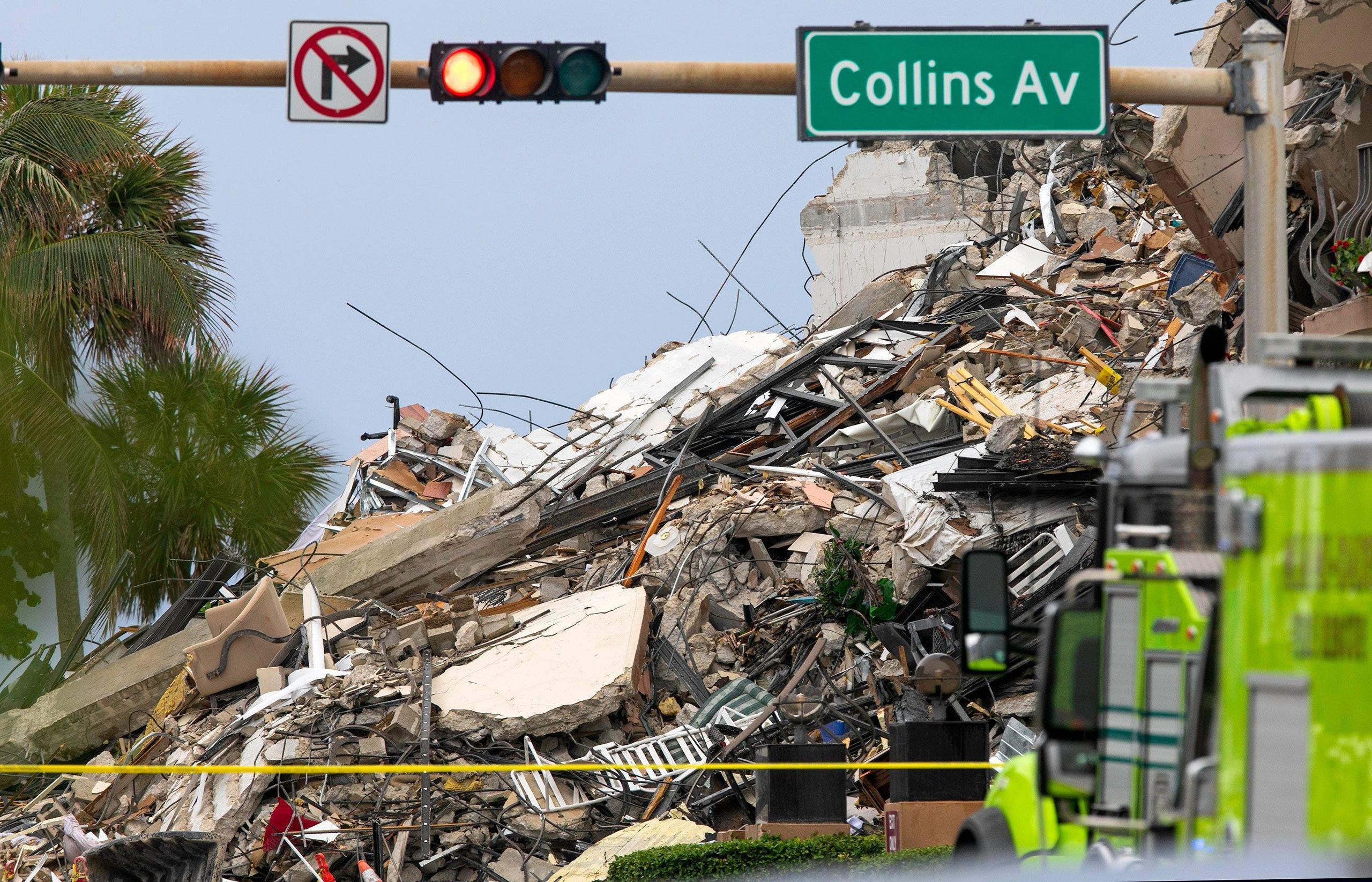 Una imagen del desastre y la catástrofe producida por el inesperado derrumbe en Miami.
