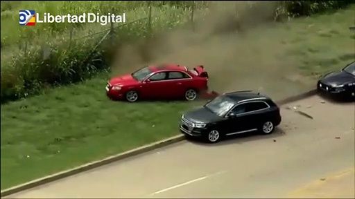 La policía de Oklahoma persigue a ese coche rojo que huye a toda velocidad por las calles de la ciudad estadounidense. Las patrullas llevan varios kilómetros pisándole los talones pero es en ese momento cuando uno de los vehículos policiales consigue sacarlo de la calzada. El coche del sospechoso queda acorralado y el fugitivo sale con las manos en alto. Se tiende en el suelo y se entrega a los agentes que lo detienen allí mismo.