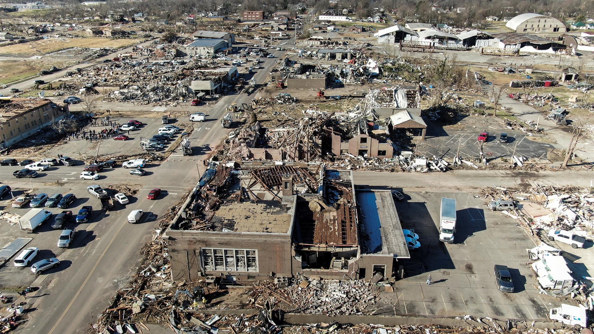 La tormenta del viernes puede pasar a la historia, ya que el tornado más destructivo -se investiga si se trató de una serie de tornados- recorrió "más de 250 millas a través de varios estados (incluidos Arkansas, Missouri, Tennessee y Kentucky)", según el NWS.