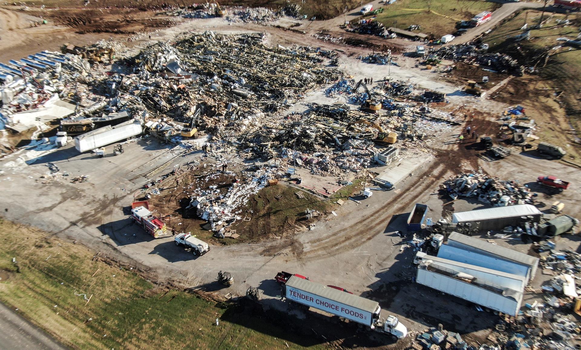 Entre las operaciones de búsqueda de Mayfield estaba la de los empleados de una fábrica de velas de municipio, en la que trabajaban 110 personas en el momento del tornado, y de la que han sido rescatadas al menos cuarenta.