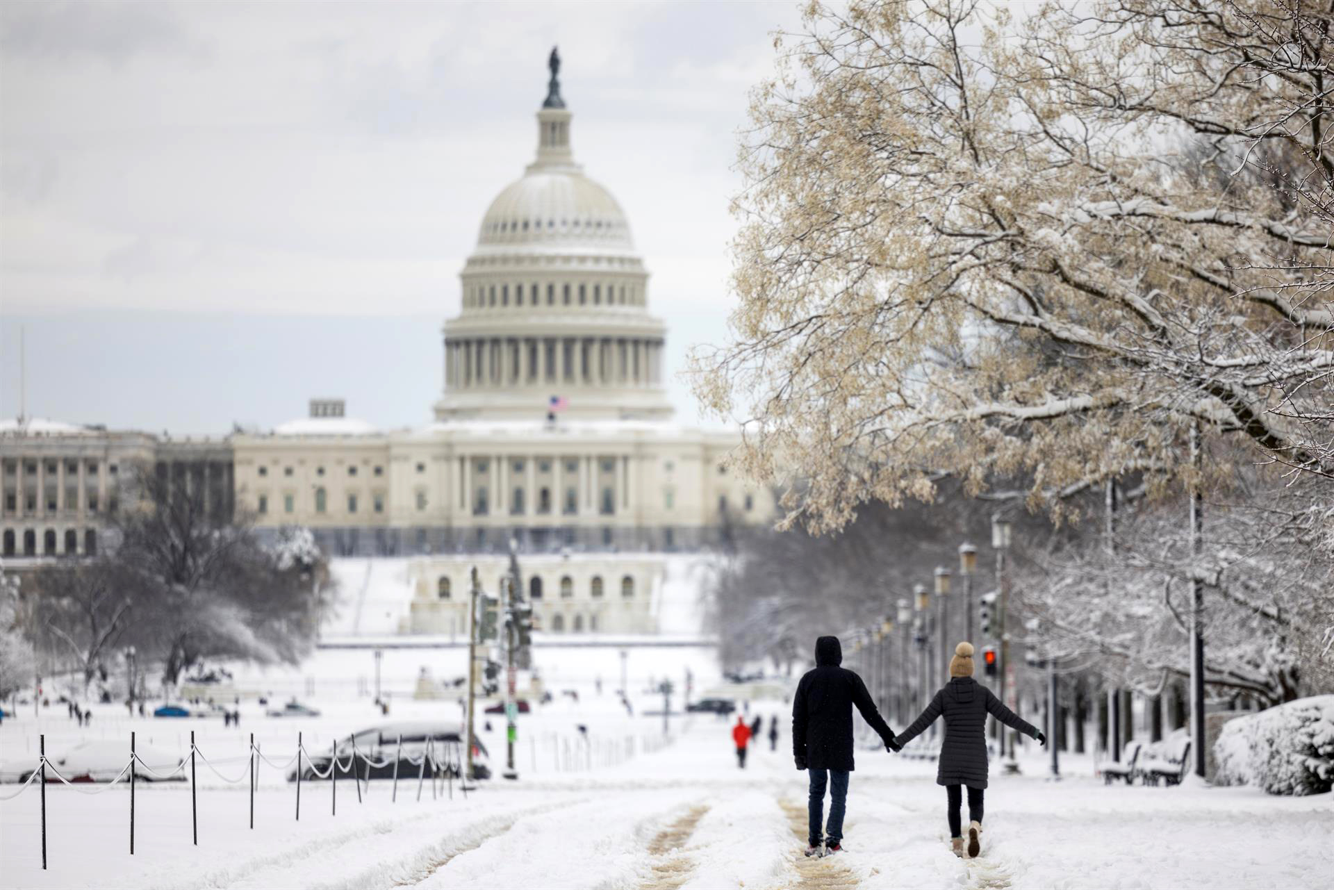 Estados Unidos ha dado la bienvenida al 2022 con la primera gran nevada del invierno que ha afectado principalmente a la costa este del país. Más de medio millón de personas han sufrido cortes de electricidad debido las tormentas de nieve y cientos de vuelos han tenido que ser cancelados en el área de la capital federal de Washington. Viajar se ha vuelto prácticamente imposible.