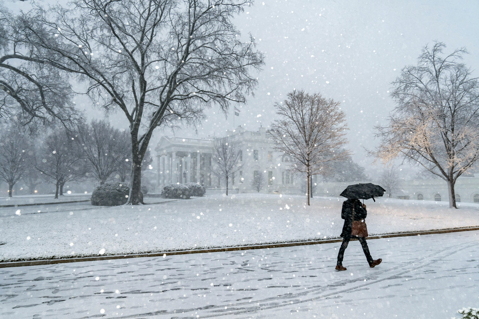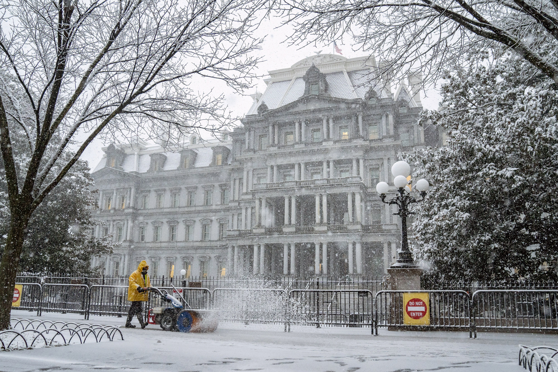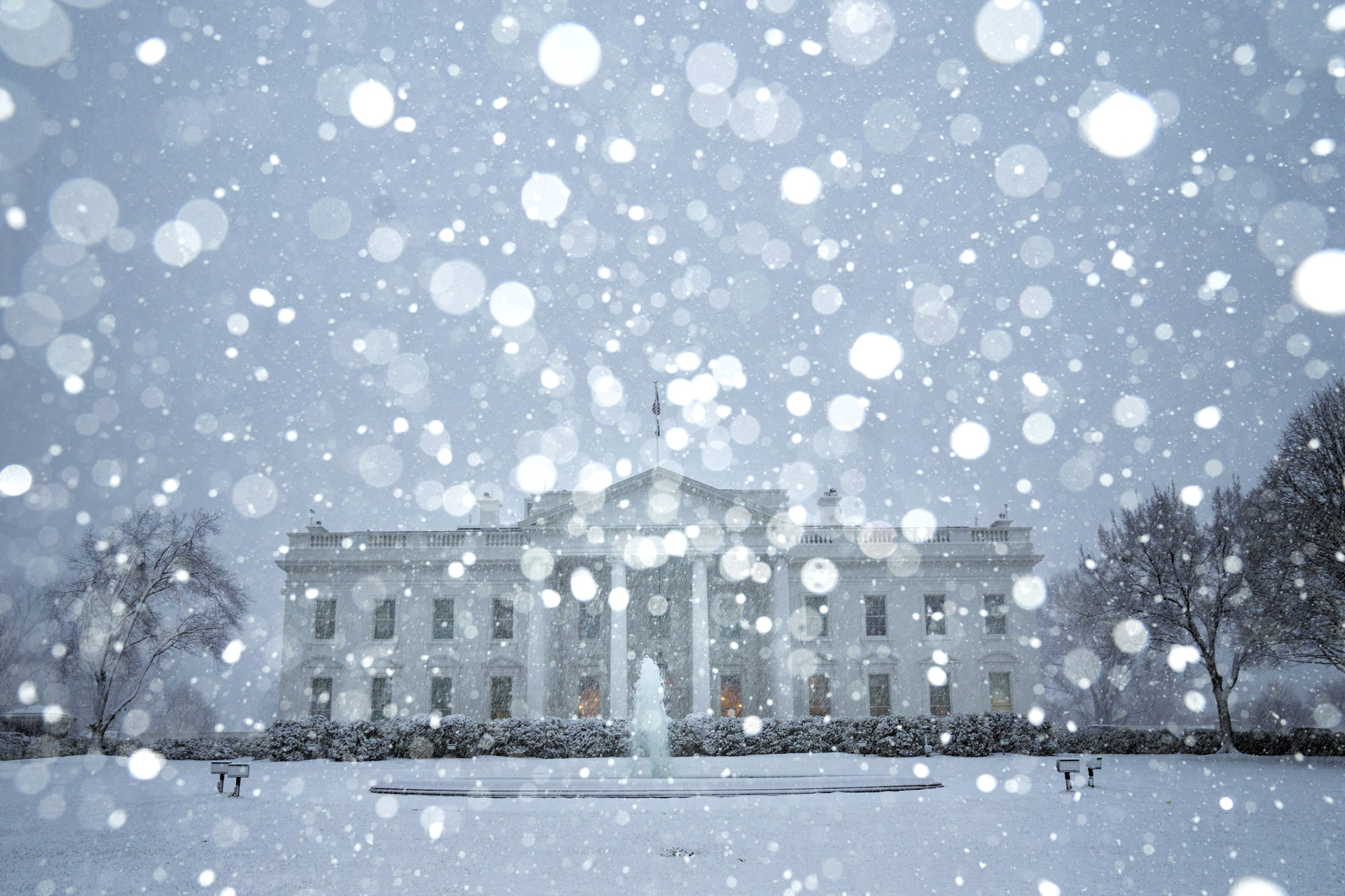 La Casa Blanca cubierta de nieve durante la primera gran nevada del año en Estados Unidos.
