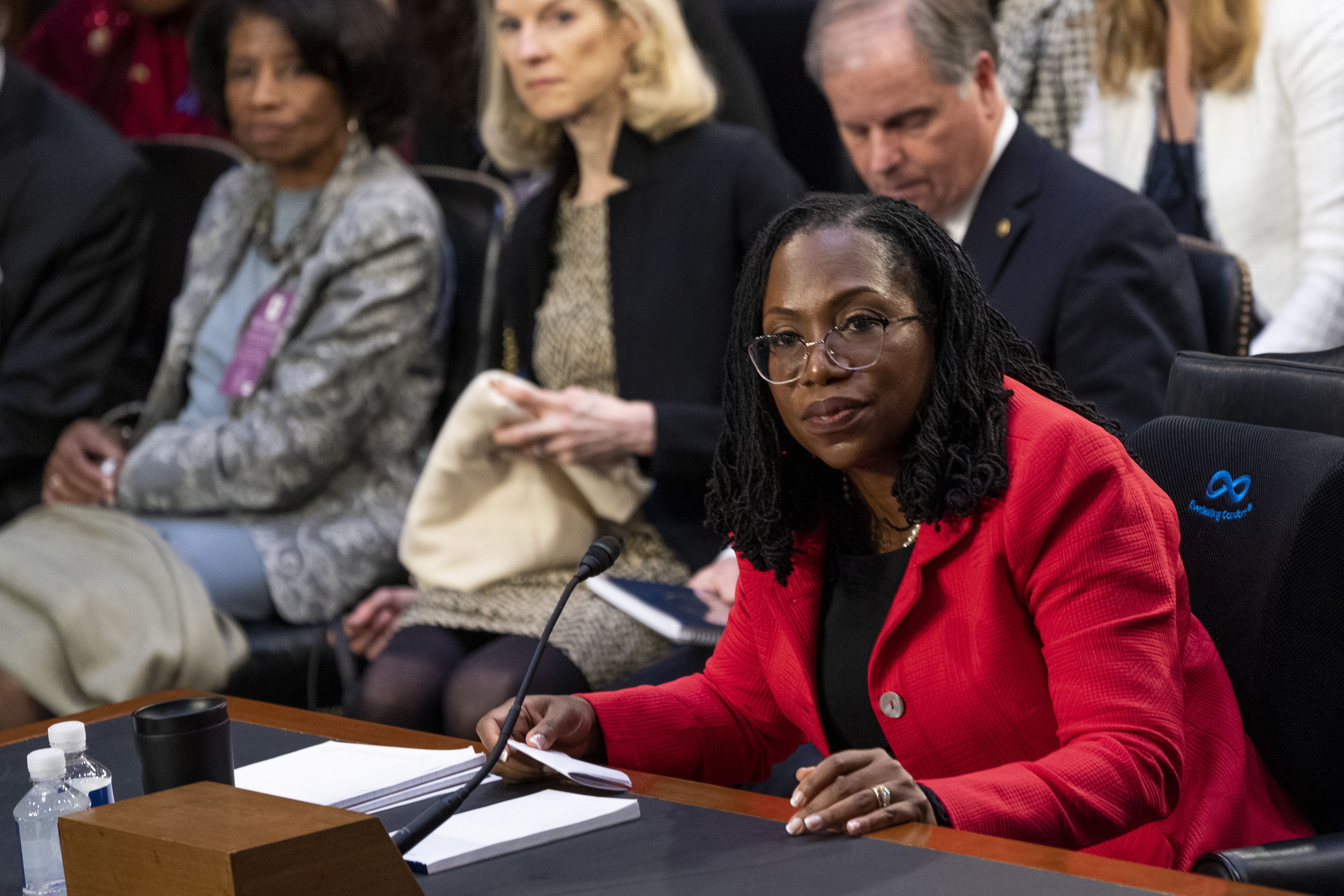 Pero la senadora volvió a la carga: "¿Está de acuerdo con la jueza Ginsburg en que existen diferencias físicas entre hombres y mujeres que perduran?" Sin embargo, la candidata rehusó nuevamente a responder: "Um, senadora, respetuosamente, no estoy familiarizado con esa cita o caso en particular, por lo que es difícil para mí comentar".