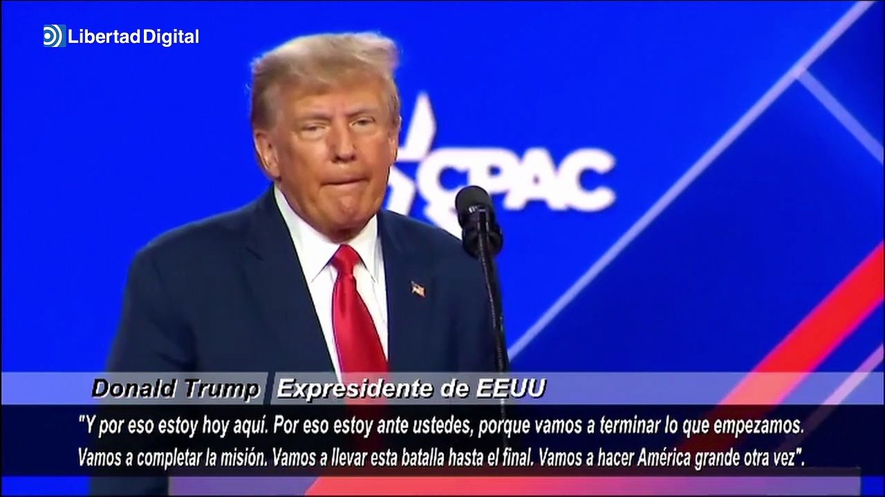 Trump pronunció el discurso principal de la conferencia, en el que dijo a una multitud de seguidores que estaba inmerso en su "batalla final" en su intento de regresar a la Casa Blanca. "Vamos a terminar lo que empezamos. Vamos a completar la misión. Vamos a llevar esta batalla hasta la victoria final", dijo. Antes de su discurso dijo a los periodistas que continuaría con su tercera campaña presidencial incluso si era acusado.