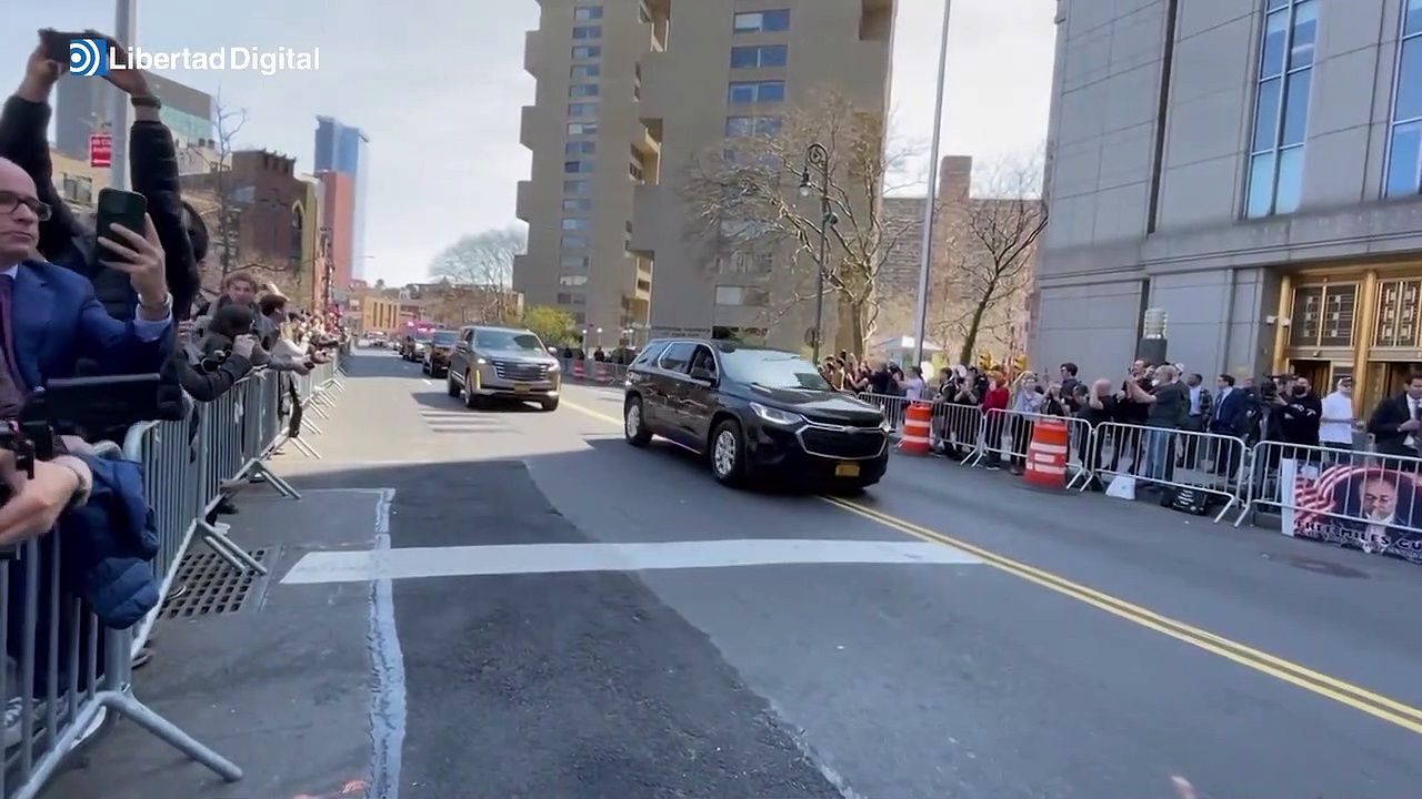 Imágenes de la comitiva del expresidente de Estados Unidos, Donald Trump, que tras dejar la Torre Trump, hacía su entrada a los juzgados.