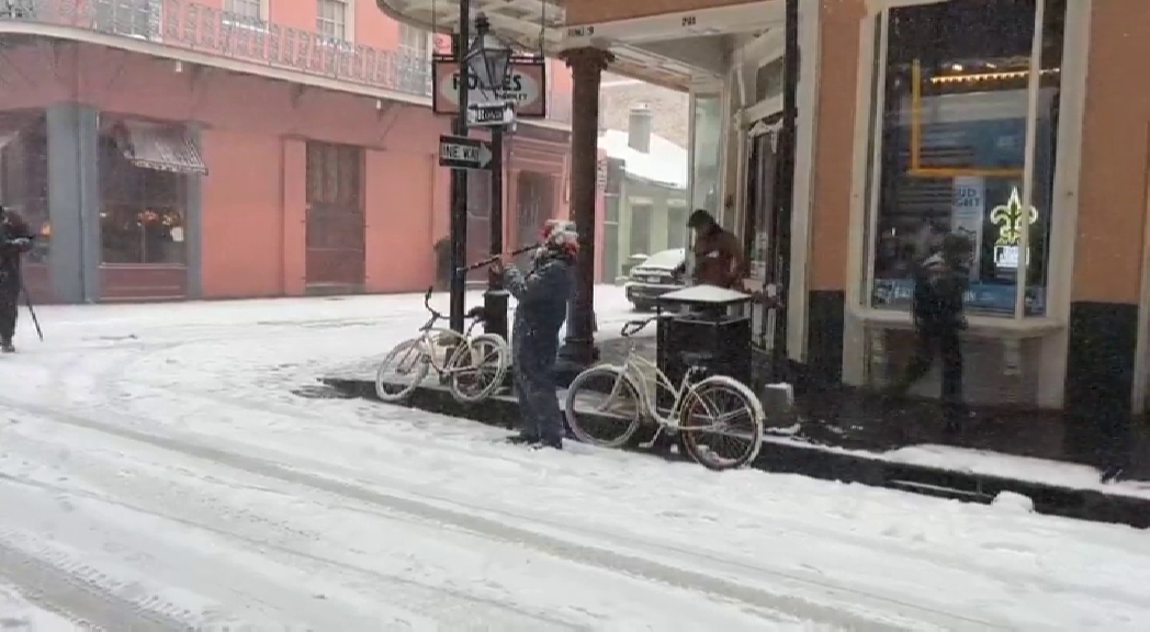 En Nueva Orleans, la ciudad conocida por su clima cálido, los vecinos están disfrutando de una escena completamente inusual: calles cubiertas por hasta 25 centímetros de nieve, una imagen que no se veía en la ciudad desde hace décadas.