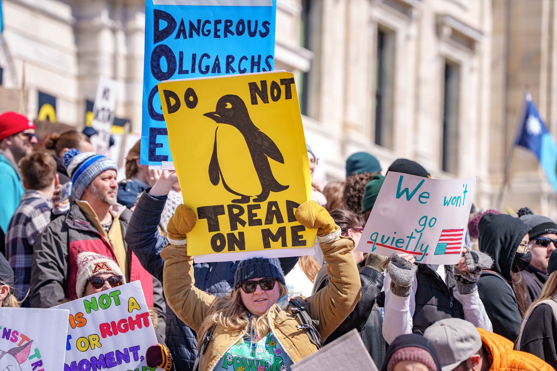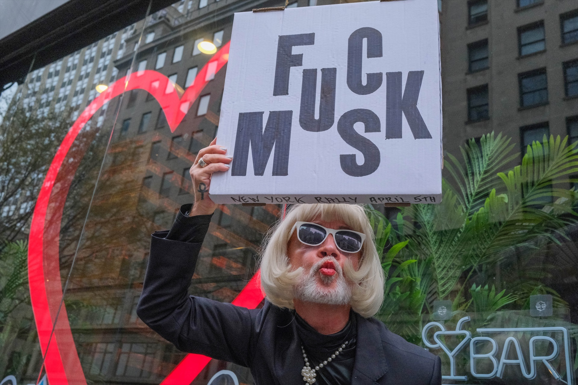 Entre las demandas, los manifestantes también piden "poner fin a la toma del poder por los milmillonarios y a la corrupción descontrolada de la Administración Trump" o directamente, como reza el cartel: ''Fuck Musk''.