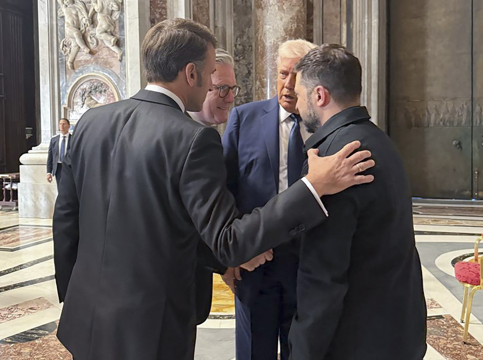 Las imágenes muestran a ambos líderes sentados cara a cara, a muy poca distancia, en medio de una zona apartada de la Basílica de San Pedro. "Constructiva", ha escrito jefe de la oficina presidencial ucraniana, Andrí Yermak Yermak, en sus redes sociales junto a una fotografía que capta el momento de la reunión. También ha trascendido otra imagen en la que se ve a Zelenski y Trump hablando de pie con el presidente francés, Emmanuel Macron, y el primer ministro británico, Keir Starmer, dentro de la basílica.