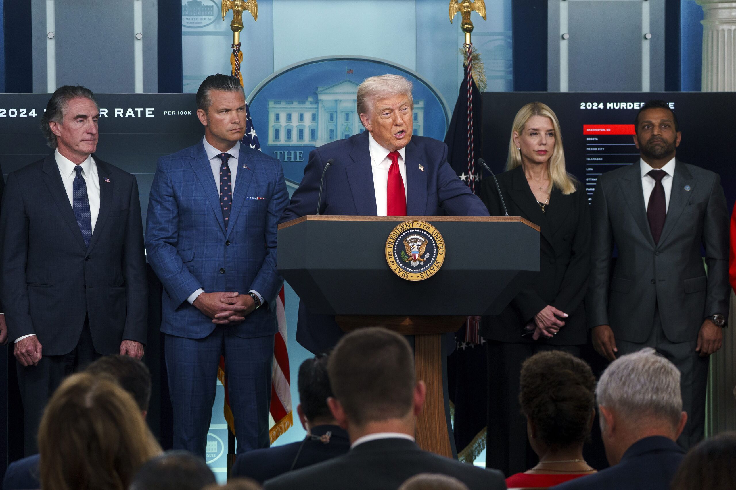 El republicano ha cargado con dureza contra la gestión del Partido Demócrata, a quien acusa de haber convertido la ciudad en "un santuario para los criminales". Según Trump, Washington está actualmente a merced de "bandas violentas y criminales sanguinarios, turbas errantes de jóvenes desenfrenados, drogadictos y personas sin hogar". Dos noticias recientes han contribuido a : el asesinato de un empleado del Congreso y la paliza recibida por un extrabajador del DOGE fichado por Elon Musk, Ed "Big Balls" Coristine, por intentar evitar que un grupo de pandilleros le robaran el coche a una mujer.