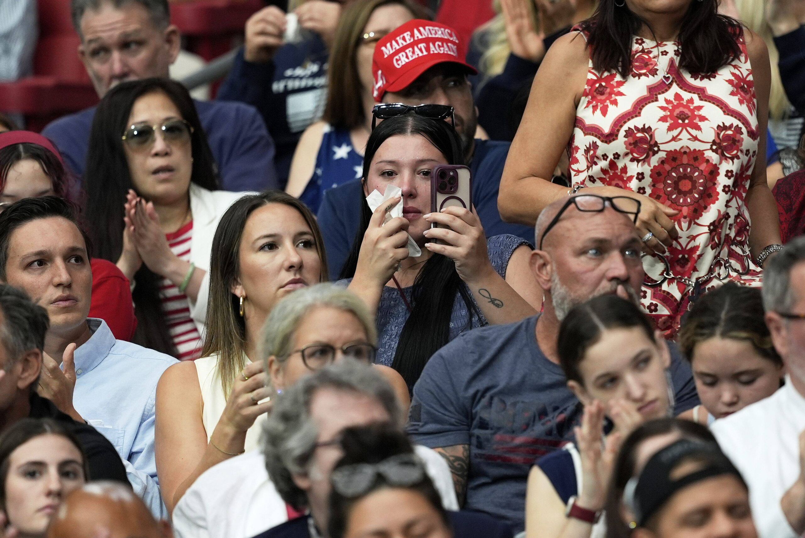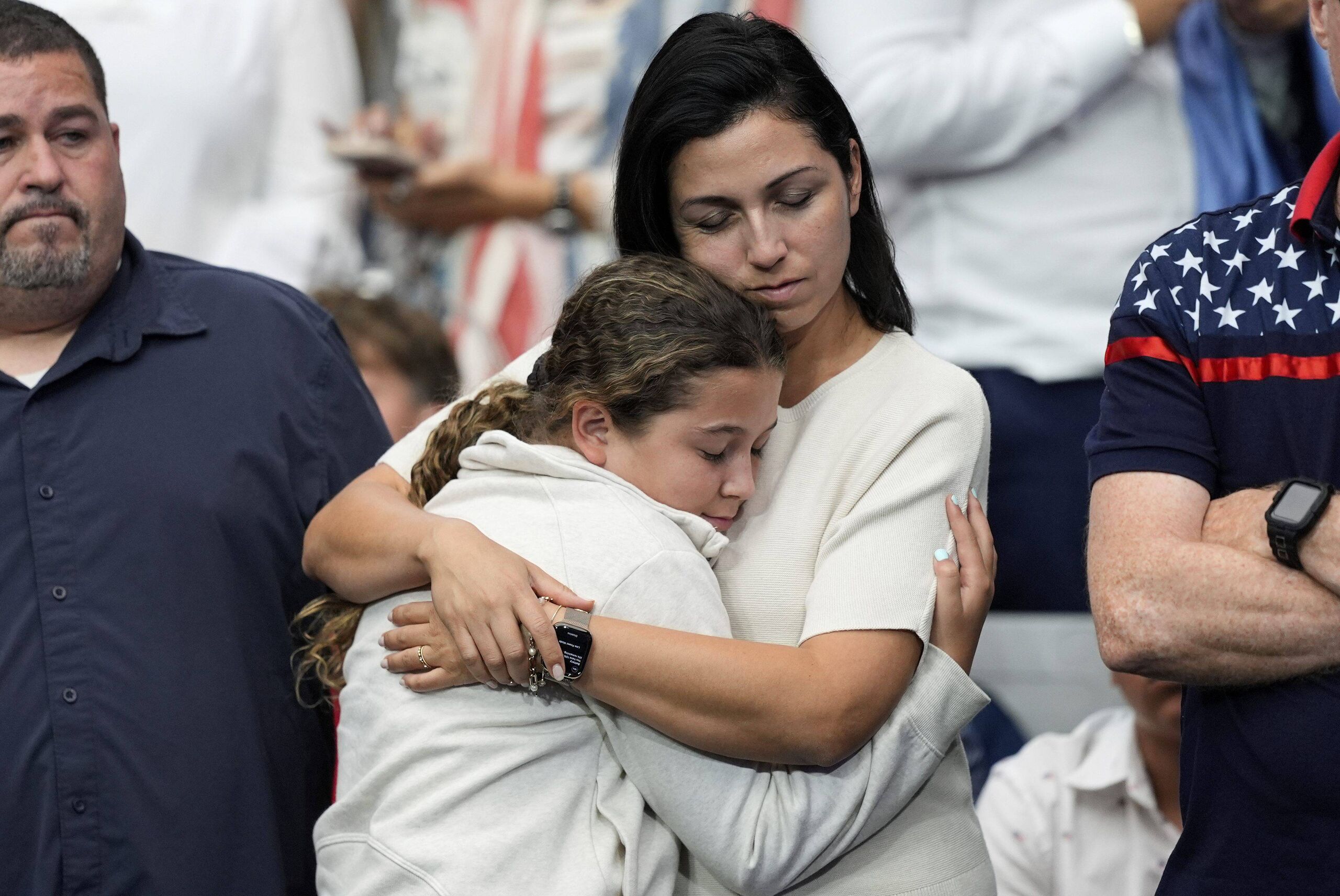 Trump abraza a Erika Kirk ante los miles de asistentes al funeral. "Todo lo que Turning Point USA construyó gracias a la visión y el arduo trabajo de Charlie, lo multiplicaremos por diez gracias al poder de su recuerdo", ha señalado su viuda sobre la organización fundada por el activista y de la que es ahora directora ejecutiva.