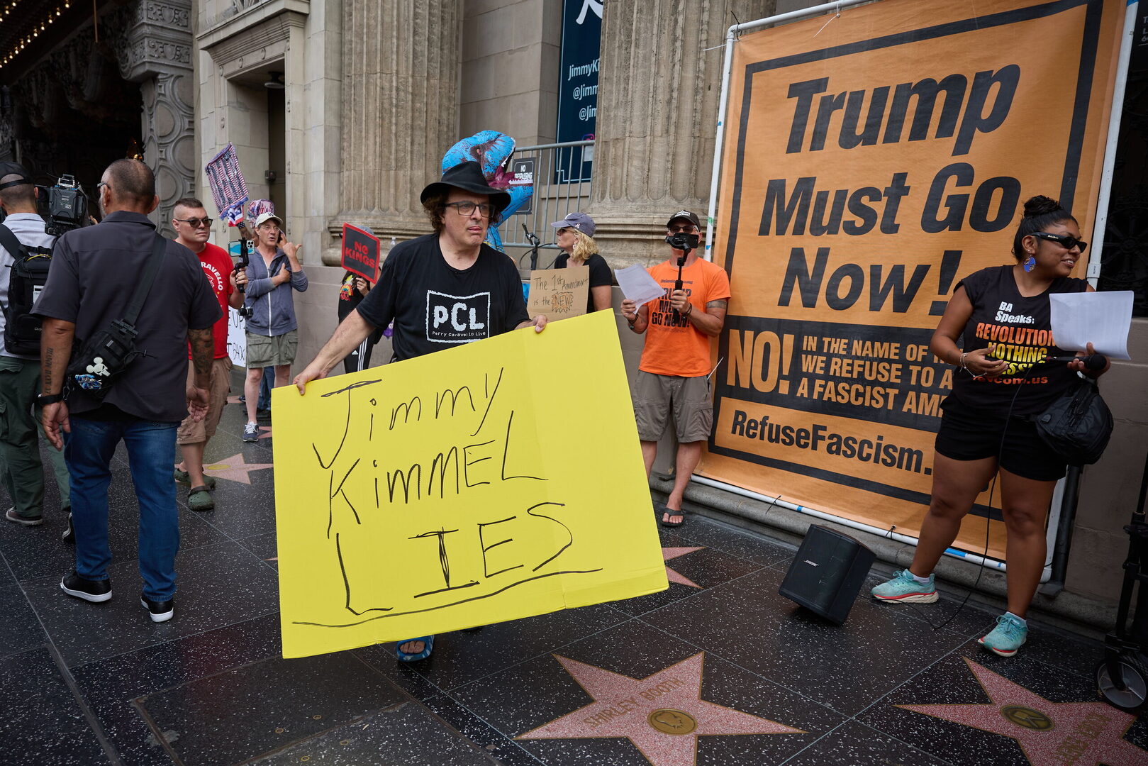Kimmel aprovechó para victimizarse por el boicot parcial que sufre su programa por parte de importantes compañías como Nexstar y Sinclair, que controlan conjuntamente un tercio de las emisoras que repite la programación de ABC y se han negado a emitir su programa nocturno.