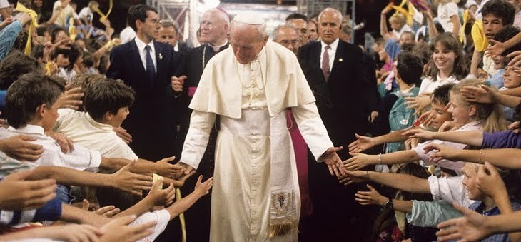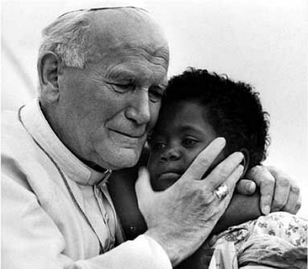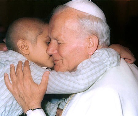 Juan Pablo II disfrutaba cuando acudía a actos en los que los protagonistas eran los niños. En la foto se ve el cariño que les tenía.