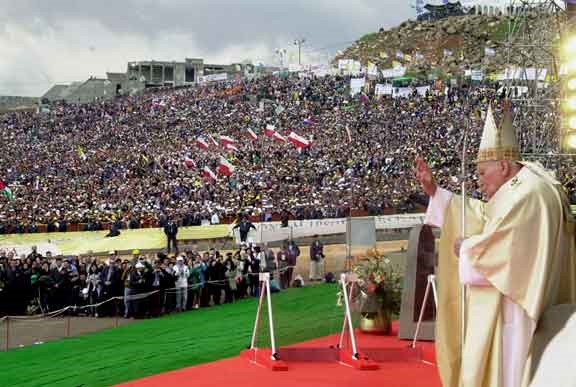 Uno de los sueños de Juan Pablo II era viajar a Israel. Lo consiguió en el Jubileo del 2000. Miles de jóvenes acompañaron al Pontífice en el Monte de las Bienaventuranzas, a los pies del mar de Galilea.