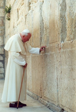 El Papa Wojtyla acercó mucho las posturas entre católicos y judios, a los que llamaba "hermanos mayores en la fe". En el 2000 pudo por fin rezar en el Muro de las Lamentaciones de Jerusalén.