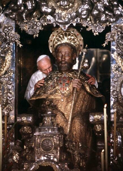 En su primera visita a España, Juan Pablo II, como un peregrino más, abrazó al Apóstol Santiago.