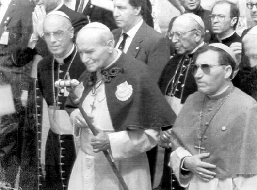 Juan Pablo II no dudó en ataviarse como un peregrino más para ganar el Jubileo en Santiago.