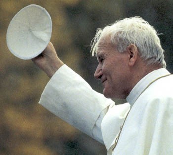 Juan Pablo II saluda a los fieles quitándose el capelo.