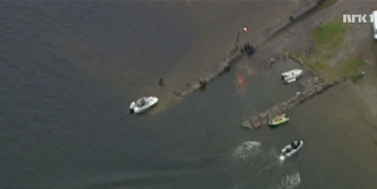 Imagen captada de la emisión del canal 24 horas de TVE, en la que pueden verse a los servicios policiales y a los médicos llegando a la Isla de Utoya para socorrer a las víctimas de la matanza