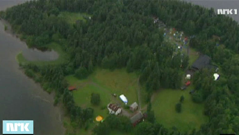Imagen de televisión tomada desde un helicóptero en el que se pueden ver numerosos cuerpos tendidos en el suelo. La imagen está tomada poco después del tiroteo en la isla de Utoya que se ha saldado con, al menos 80 muertos