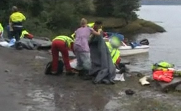 Los servicios de emergencias asisten a algunos heridos en la orilla de la isla de Utoya tras la matanza