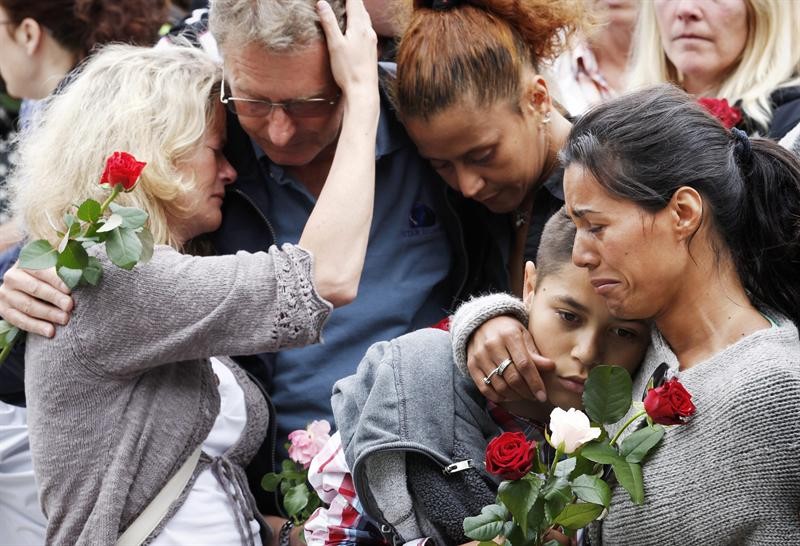 Miles de personas muestran rosas para recordar a las 76 víctimas del doble atentado.