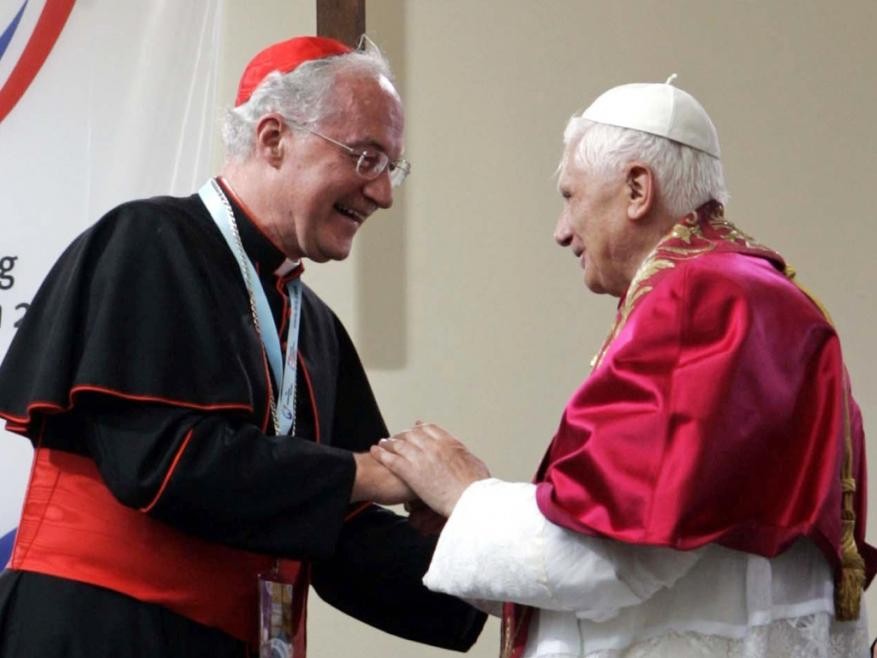 El cardenal canadiense saluda a Benedicto XVI durante la JMJ de Colonia en 2005.