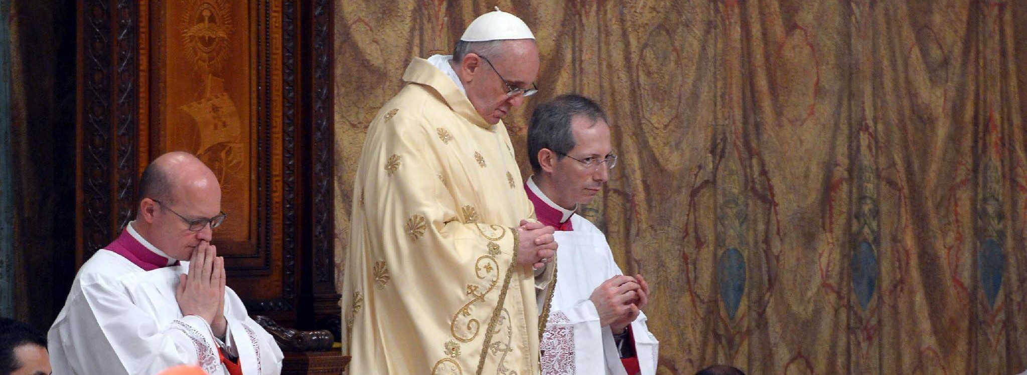 Terminada la homilía, en las oraciones de los fieles se ha rezado por el nuevo pontífice y también por Su Santidad Benedicto XVI para que "sirva a la Iglesia en el retiro con una vida dedicada a la oración y la meditación". También se ha pedido que los responsables de las naciones "no actúen movidos por la fuerza o por el interés, ni tiranicen a las personas y sean conscientes de que todo poder procede de Dios" y se ha recordado "a cuantos sufren, a cuantos luchan desamparados en la vida para que Cristo, el Pastor supremo, los conforte y consuele dándoles la corona de la gloria". Una vez finalizada la Misa, el Pontífice ha visitado el apartamento papal en el palacio apostólico.
