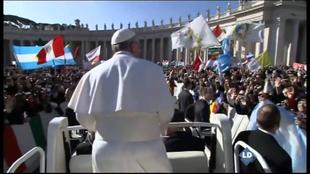 Una multitud ha recibido al Papa, que ha saludado desde un jeep descubierto. Asisten a la entronización representantes de 132 países.